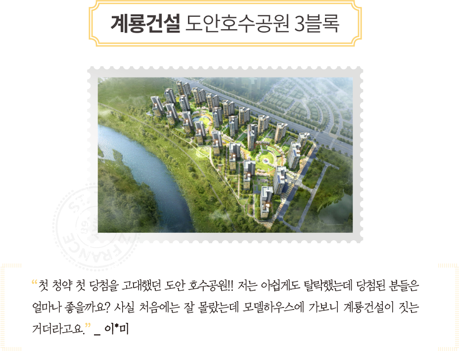올해 4월 계룡건설은 ‘화성동탄2 A-87블록(BL) 공공지원 민간임대주택사업’을 수주하였는데요. 오랜 기간 준비하고 계획했던 프로젝트인 만큼 모든 분들이 만족할 수 있는 결과물로 보답하겠습니다.